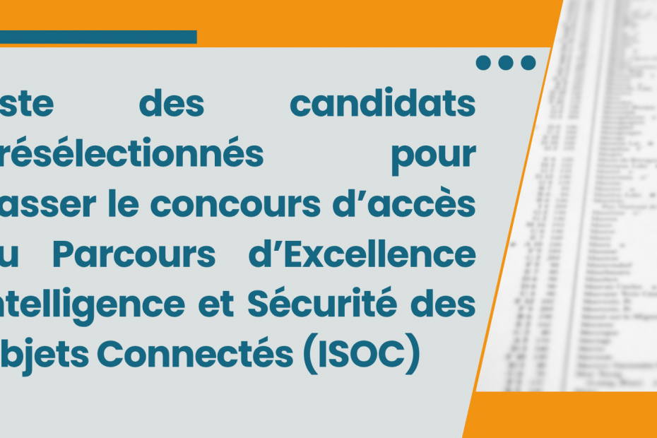 Liste des candidats présélectionnés pour passer le concours d’accès au Parcours d’Excellence Intelligence et Sécurité des Objets Connectés (ISOC)14 octobre 202515 octobre 2025Actualité, Parcours d'Excellence
