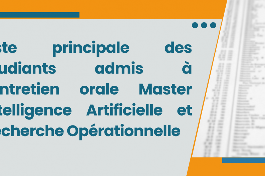 Avis: Liste principale des étudiants admis à l’Entretien orale Master Intelligence Artificielle et Recherche Opérationnelle14 octobre 202514 octobre 2025Actualité