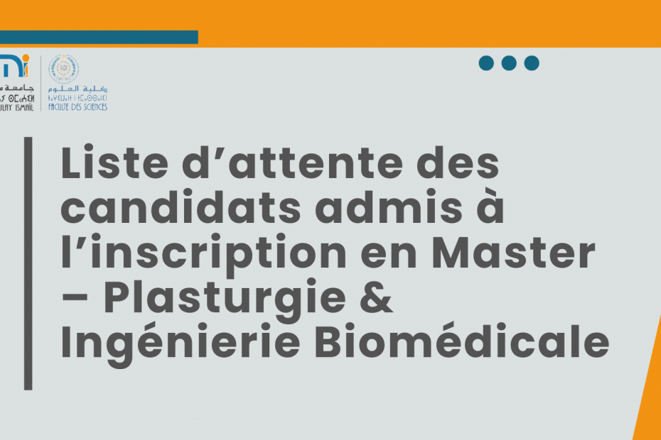 Avis : Liste d’attente des candidats admis à l’inscription en Master – Plasturgie & Ingénierie Biomédicale (Master PIB)3 novembre 2025Actualité, Master