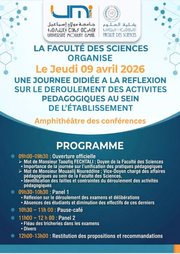Accueil » Actualités » La Faculté Des Sciences Organise Une Journée Dédiée À La Réflexion Sur Le Déroulement Des Activités Pédagogiques Au Sein De L’établissement