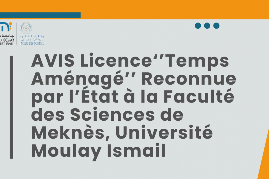 AVIS Licence‘’Temps Aménagé’’ Reconnue par l’État à la Faculté des Sciences de Meknès, Université Moulay Ismail28 octobre 202530 octobre 2025Actualité, Formation Temps Aménagé