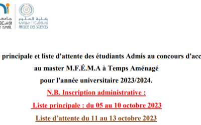 Il est porté à la connaissance des étudiants admis au concours des masters pour l’année universitaire 2024/2025 que l’inscription a débutée.Pièces à fournir :1- Original de La licence et sa photocopie (attestation de réussite exceptionnellement… Avis important aux admis en Master