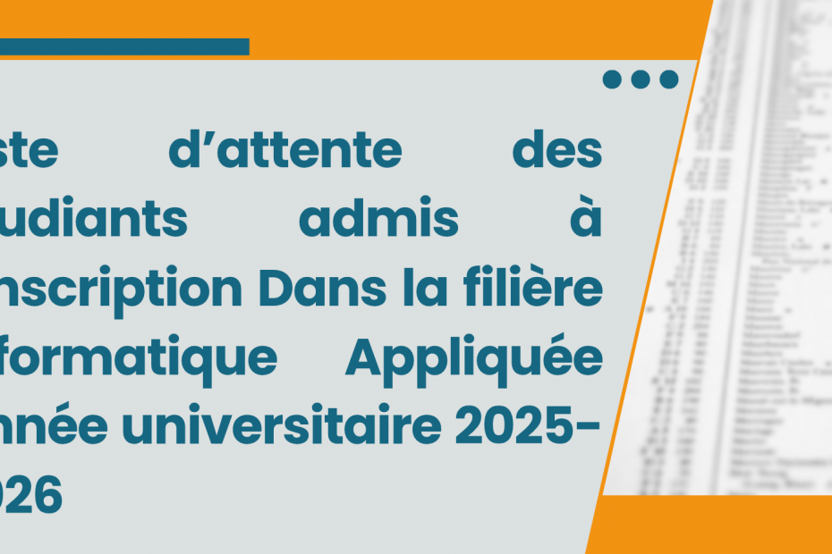 Liste d’attente des étudiants admis à l’inscription Dans la filière Informatique Appliquée pour l’Année universitaire 2025-202618 octobre 202518 octobre 2025Actualité