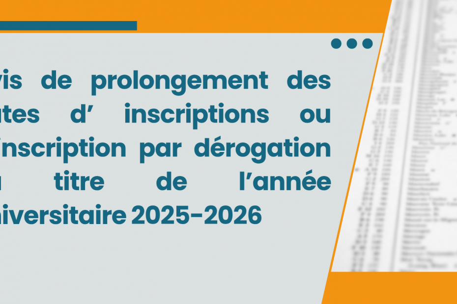 Avis de prolongement des dates d’ inscriptions ou réinscription par dérogation au titre de l’année universitaire 2025-202618 octobre 2025Actualité