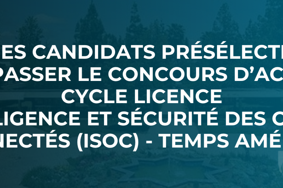 Liste des candidats présélectionnés pour passer le concoursd’accès au cycle licence – Intelligence et Sécurité des Objets Connectés (ISOC) – Temps aménagé19 novembre 202519 novembre 2025Actualité, Formation Temps Aménagé