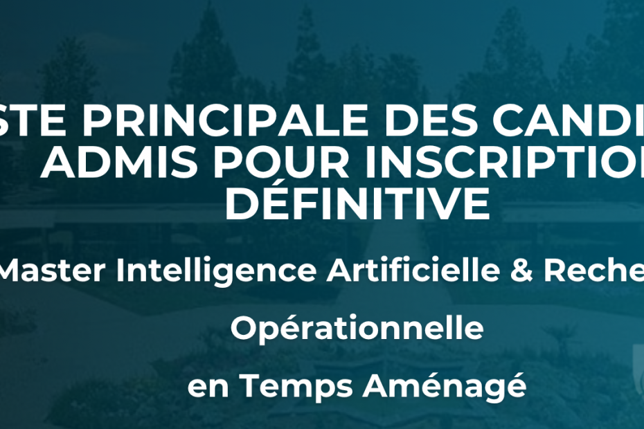 Liste principale des candidats admis pour inscription définitive – Master Intelligence Artificielle & Recherche Opérationnelle en Temps Aménagé19 novembre 2025Actualité, Formation Temps Aménagé, Master