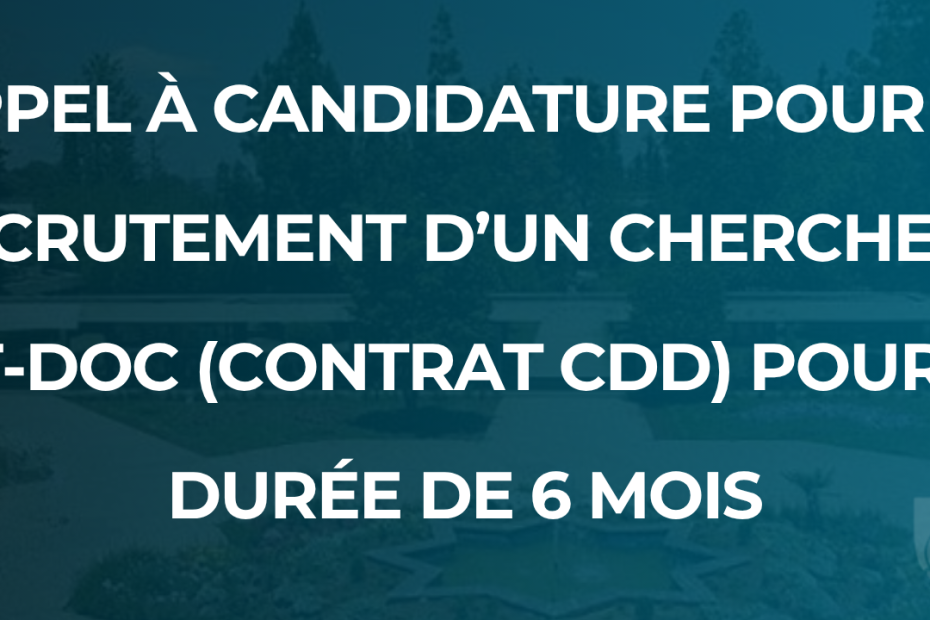 Appel à candidature pour le recrutement d’un chercheur Post-Doc(Contrat CDD) pour une durée de 6 mois21 avril 2026Actualité, Doctorat, Recrutement
