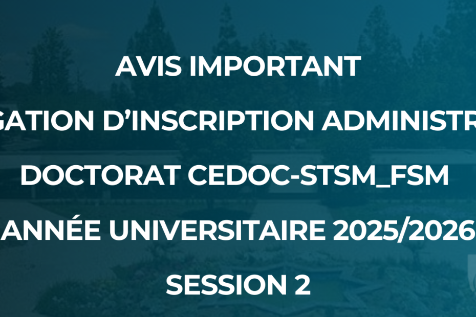 AVIS IMPORTANT – Inscription Administrative au Doctorat : CEDoc-STSM_FSM Année Universitaire 2025/2026-Session 226 décembre 202526 décembre 2025Actualité, Doctorat