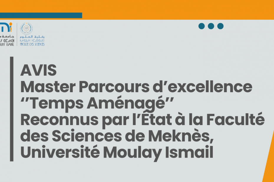 AVIS – Master Parcours d’excellence ‘’Temps Aménagé’’ Reconnus par l’État à la Faculté des Sciences de Meknès, Université Moulay Ismail27 octobre 202529 octobre 2025Actualité, Formation Temps Aménagé, Parcours d'Excellence