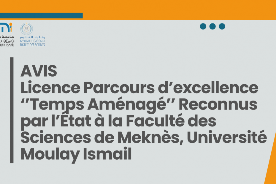 AVIS – Licence Parcours d’excellence ‘’Temps Aménagé’’ Reconnus par l’État à la Faculté des Sciences de Meknès, Université Moulay Ismail28 octobre 202529 octobre 2025Actualité, Formation Temps Aménagé, Parcours d'Excellence