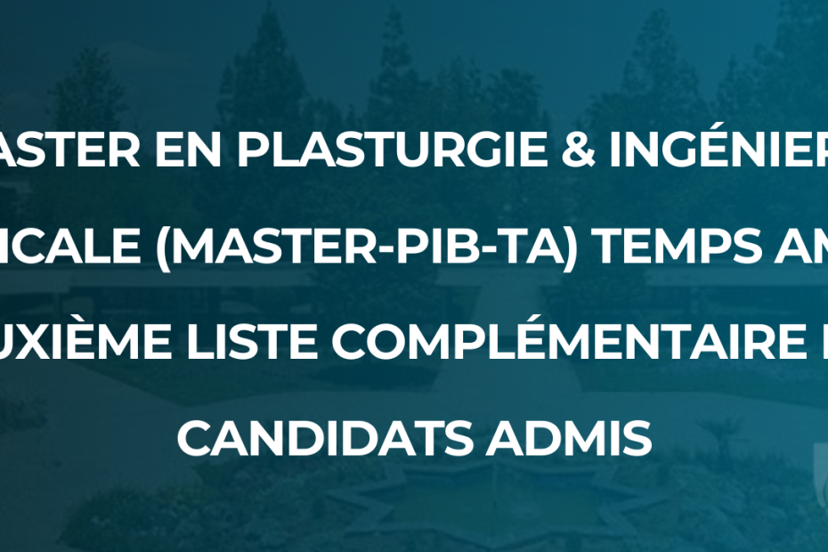 Master en Plasturgie & Ingénierie Biomédicale (Master-PIB-TA)Temps Aménagé – Deuxième liste complémentaire des candidats admis12 décembre 202512 décembre 2025Actualité, Formation Temps Aménagé, Master