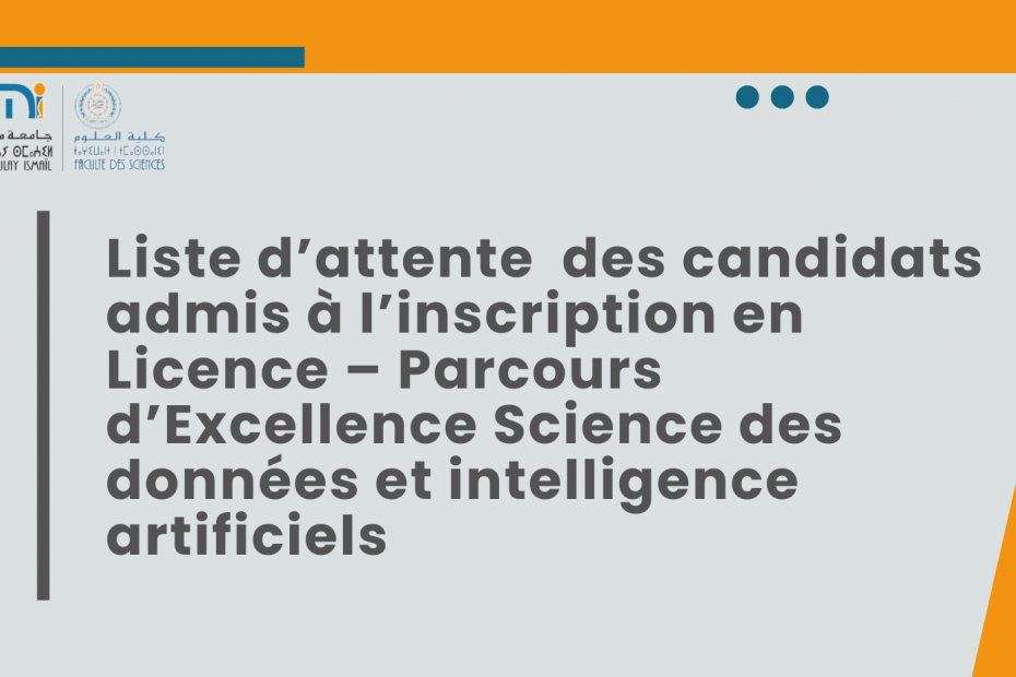 Avis : Liste d’attente des candidats admis à l’inscription en Licence – Parcours d’Excellence Science des données et intelligence artificiels29 octobre 2025Actualité, Licence, Parcours d'Excellence