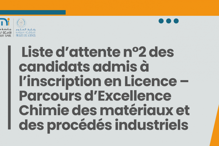 Avis : Liste d’attente n°2 des candidats admis à l’inscription en Licence – Parcours d’Excellence Chimie des matériaux et des procédés industriels29 octobre 2025Actualité, Licence, Parcours d'Excellence