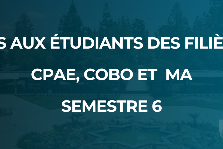 Avis aux étudiants des filières CPAE, COBO et MA – Semestre 61 avril 20261 avril 2026Actualité, Licence