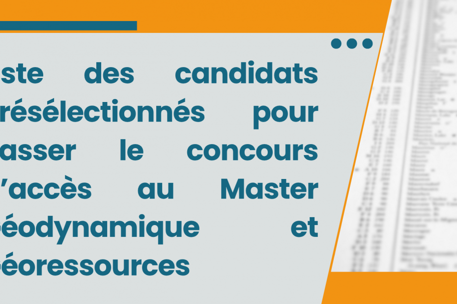 Liste des candidats présélectionnés pour passer le concours D’accès au Master Géodynamique et Géoressources14 octobre 2025Actualité, Master