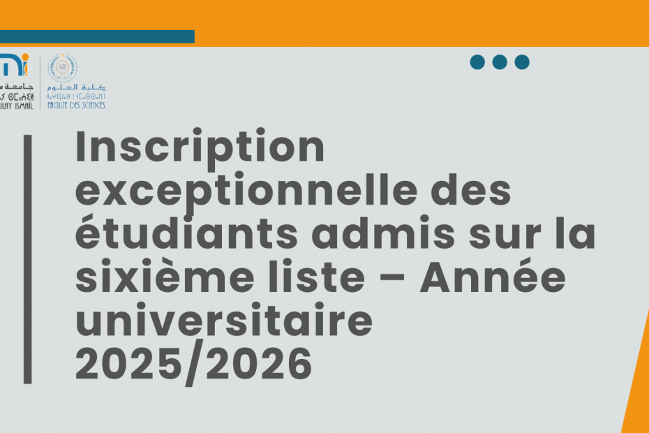 Avis : Inscription exceptionnelle des étudiants admis sur la sixième liste – Année universitaire 2025/202631 octobre 20254 novembre 2025Actualité, Licence