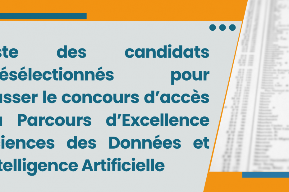 Avis : Liste des candidats présélectionnés pour passer le concours d’accès au Parcours d’Excellence Sciences des Données et Intelligence Artificielle14 octobre 202515 octobre 2025Actualité, Parcours d'Excellence