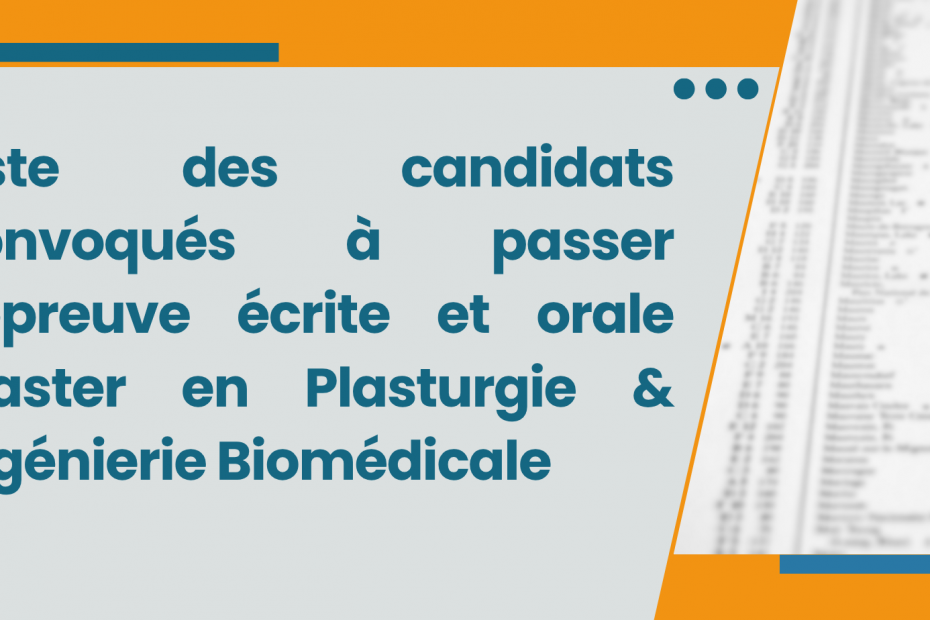 Avis : Liste des candidats convoqués à passer l’épreuve écrite et orale Master en Plasturgie & Ingénierie Biomédicale14 octobre 202515 octobre 2025Actualité, Master