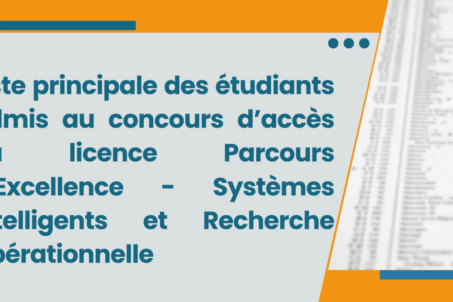 Avis : Liste principale des étudiants admis au concours d’accès au licence Parcours d’Excellence – Systèmes Intelligents et Recherche Opérationnelle.14 octobre 2025Actualité, Parcours d'Excellence