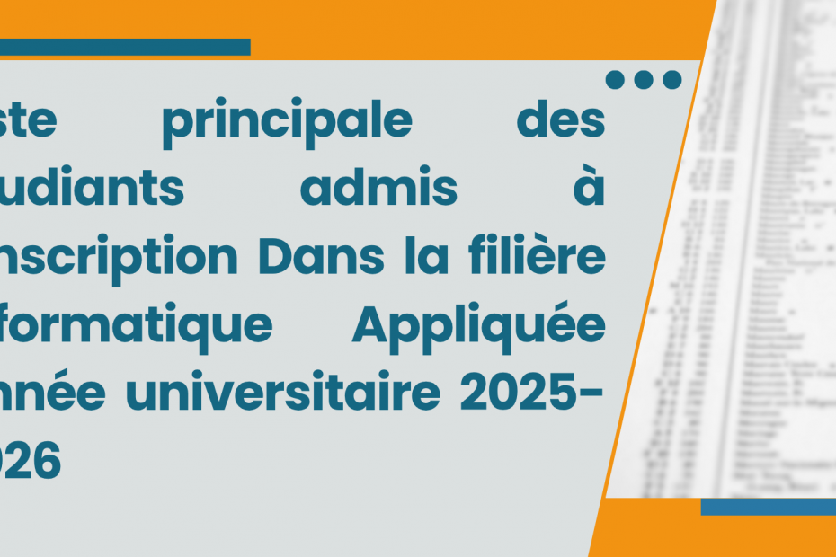 Avis : Liste principale des étudiants admis à l’inscription Dans la filière Informatique Appliquée Année universitaire 2025-202614 octobre 202514 octobre 2025Actualité, Licence