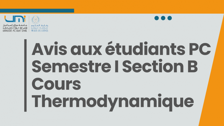 Avis aux étudiants PC Semestre I Section B CoursThermodynamique