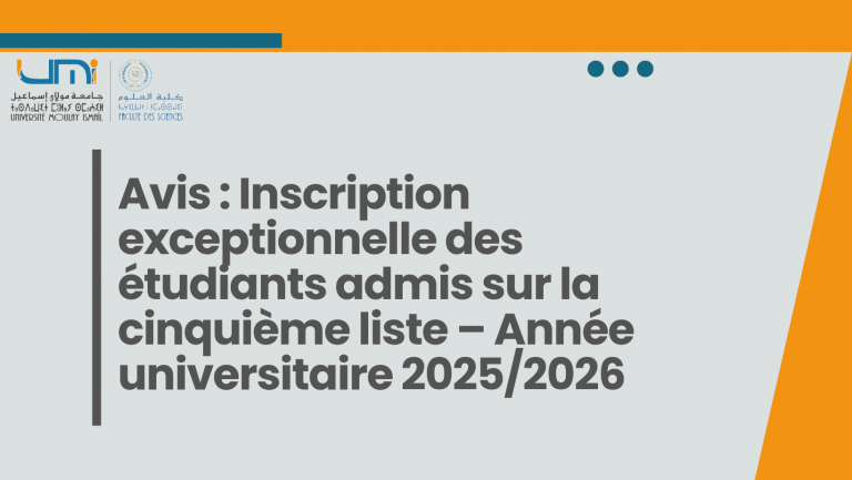 Avis : Inscription exceptionnelle des étudiants admis sur la cinquième liste – Année universitaire 2025/2026