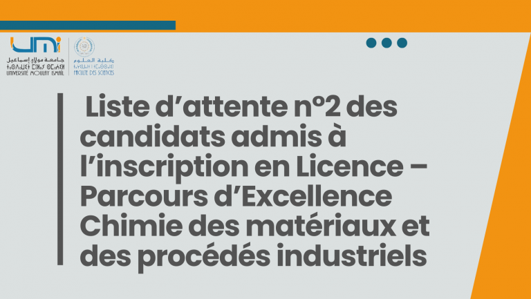 Avis : Liste d’attente n°2 des candidats admis à l’inscription en Licence – Parcours d’Excellence Chimie des matériaux et des procédés industriels