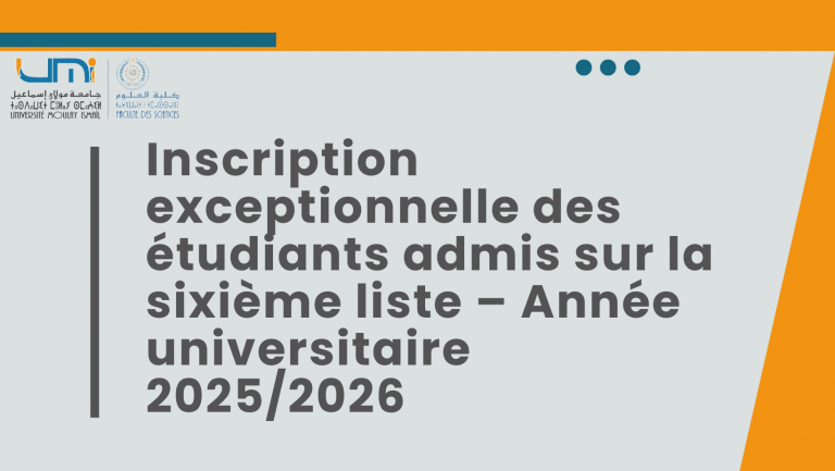 Avis : Inscription exceptionnelle des étudiants admis sur la sixième liste – Année universitaire 2025/2026
