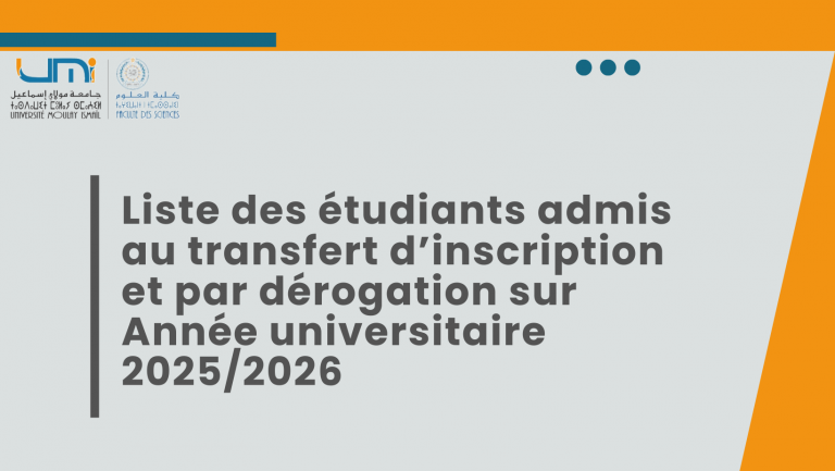 Avis : Liste des étudiants admis au transfert d’inscription et par dérogation sur Année universitaire 2025/2026