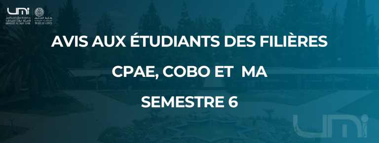 Avis aux étudiants des filières CPAE, COBO et MA – Semestre 6