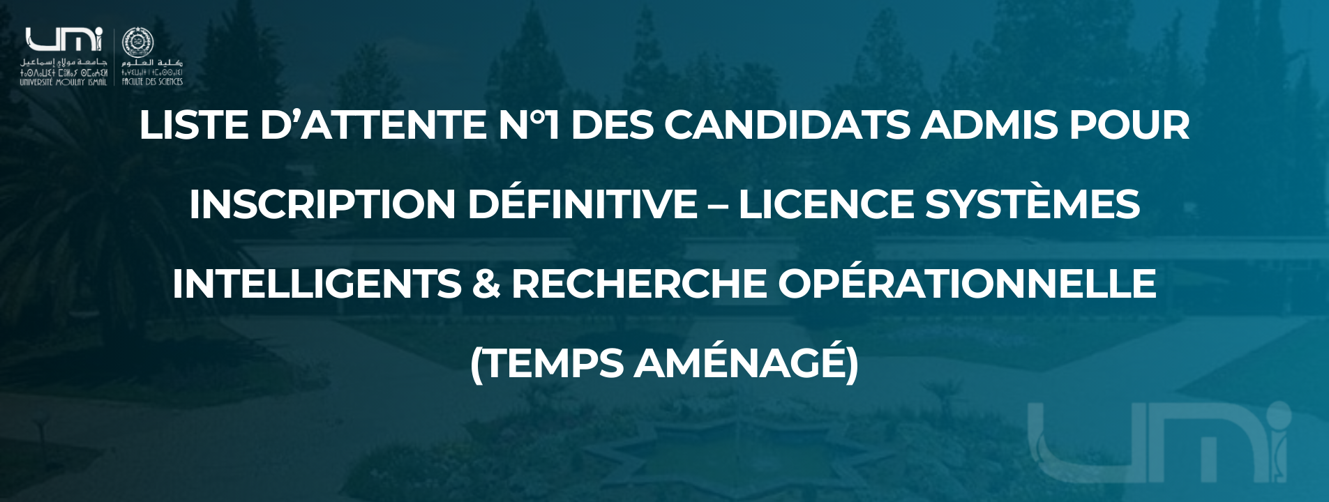 Liste d’attente n°1 des candidats admis pour inscription définitive – Licence Systèmes Intelligents & Recherche Opérationnelle (Temps Aménagé)