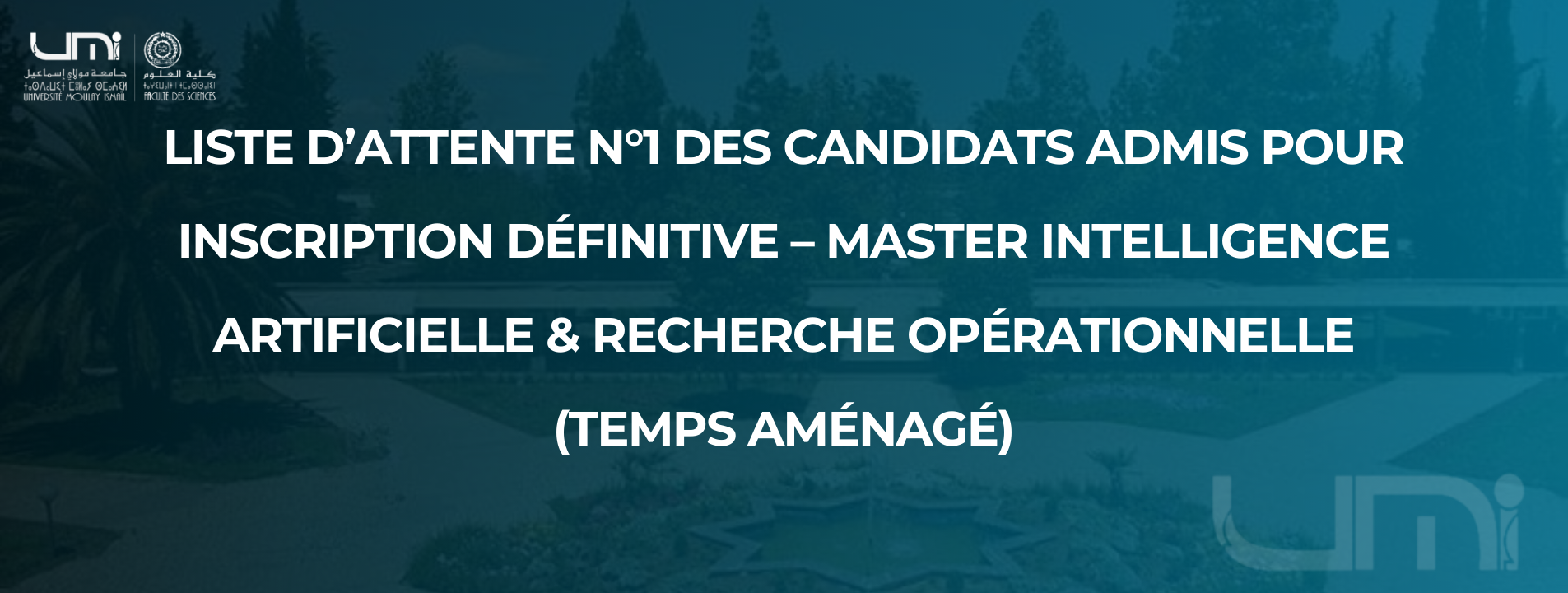 Liste d’attente n°1 des candidats admis pour inscription définitive – Master Intelligence Artificielle & Recherche Opérationnelle (Temps Aménagé)