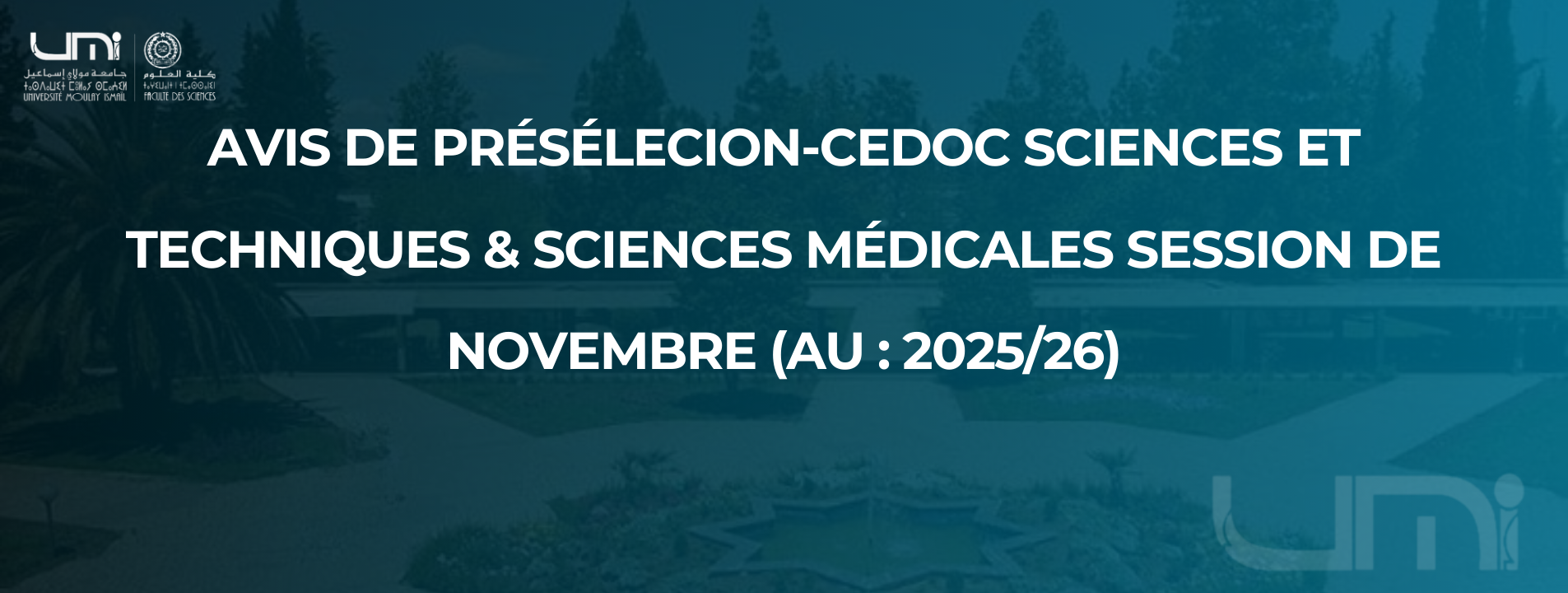 AVIS DE PRÉSÉLECION-CEDoc Sciences et Techniques & Sciences Médicales Session de Novembre (AU : 2025/26)