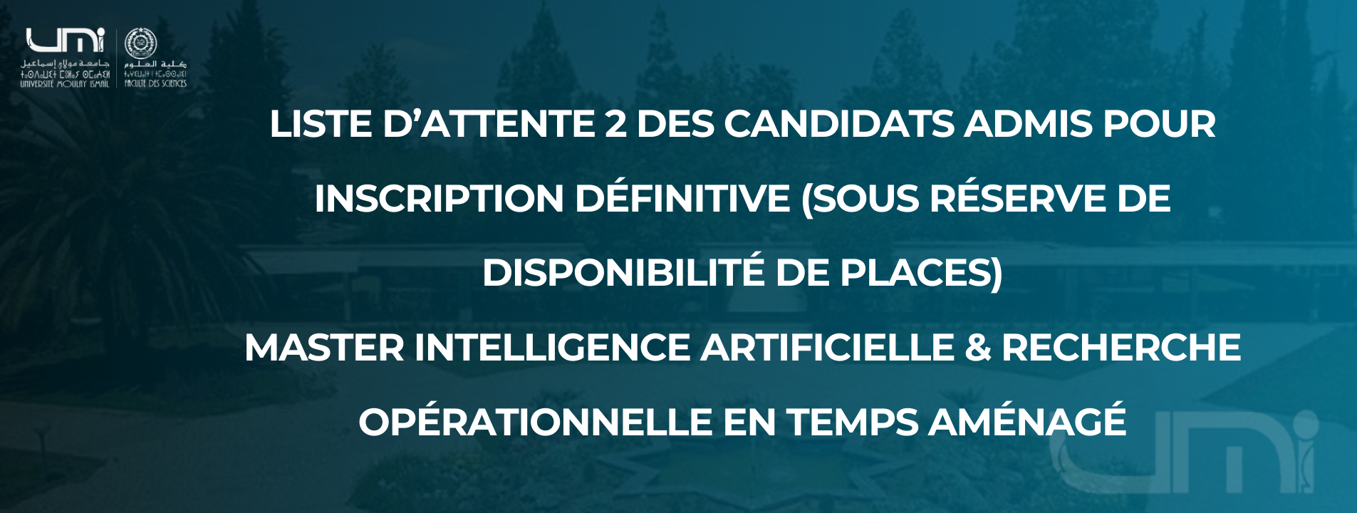 Liste d’attente 2 des candidats admis pour inscription définitive (sous réserve de disponibilité de places) – Master Intelligence Artificielle & Recherche Opérationnelle en Temps Aménagé
