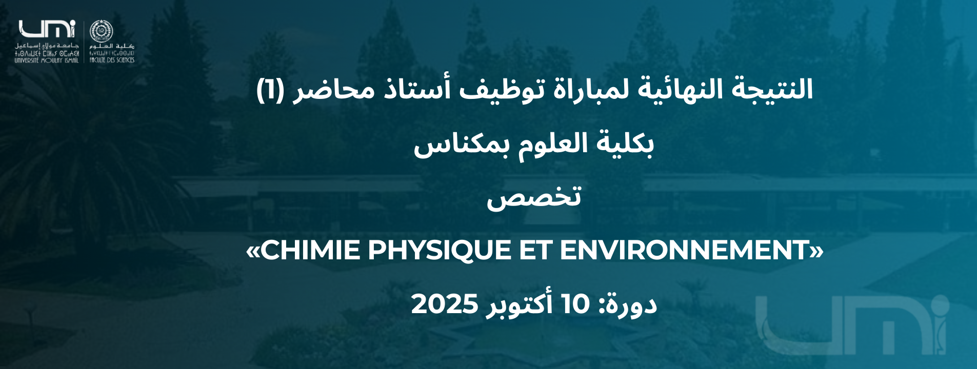 النتيجة النهائية لمباراة توظيف أستاذ محاضر (1) بكلية العلوم بمكناس تخصص: «Chimie Physique et Environnement» دورة: 10 أكتوبر 2025