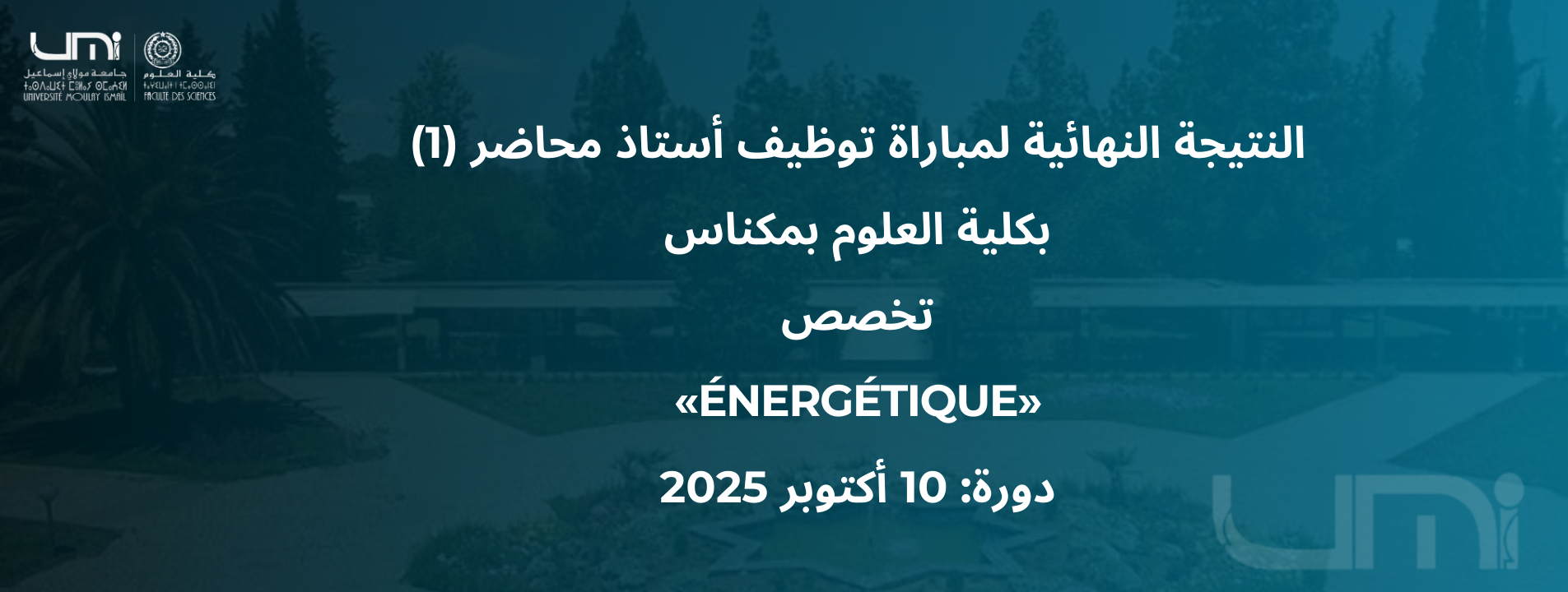 النتيجة النهائية لمباراة توظيف أستاذ محاضر (1) بكلية العلوم بمكناس تخصص: «Énergétique» دورة: 10 أكتوبر 2025