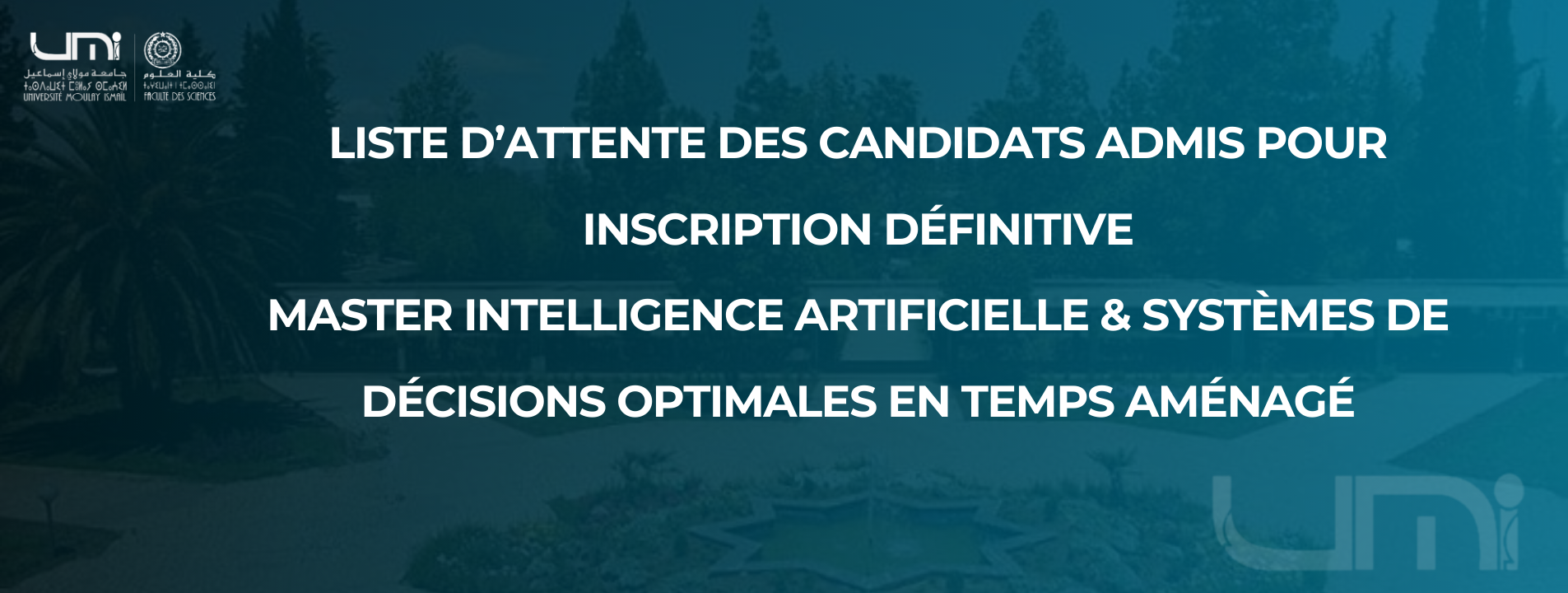 Liste d’attente des candidats admis pour inscription définitive – Master Intelligence Artificielle & Systèmes de Décisions Optimales en Temps Aménagé