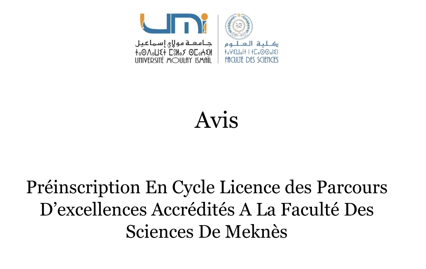 Dans le cadre du programme JobInTech, La Faculté des Sciences de Meknès lance les inscriptions aux formations:1- Développement Web & Mobile (DWM) 2- Sciences des Données & Intelligence Artificielle (SDIA) Et ce sur le lien:https://jobintech.academy/candidature-jobintech/