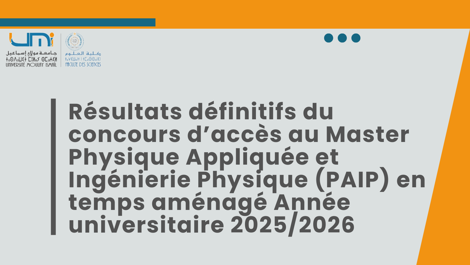 Résultats définitifs du concours d’accès au Master Physique Appliquée etIngénierie Physique (PAIP) en temps aménagéAnnée universitaire 2025/2026
