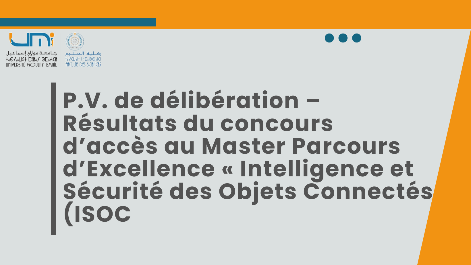Avis : P.V. de délibération – Résultats du concours d’accès au Master Parcours d’Excellence Intelligence et Sécurité des Objets Connectés (ISOC)