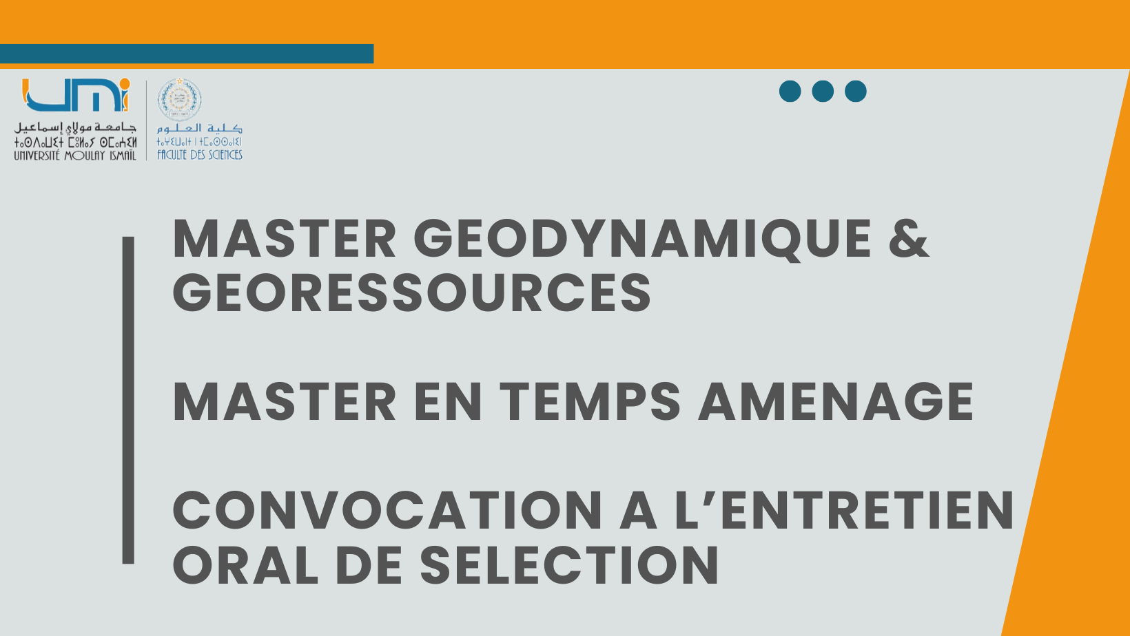 MASTER GEODYNAMIQUE & GEORESSOURCES MASTER EN TEMPS AMENAGE CONVOCATION A L’ENTRETIEN ORAL DE SELECTION
