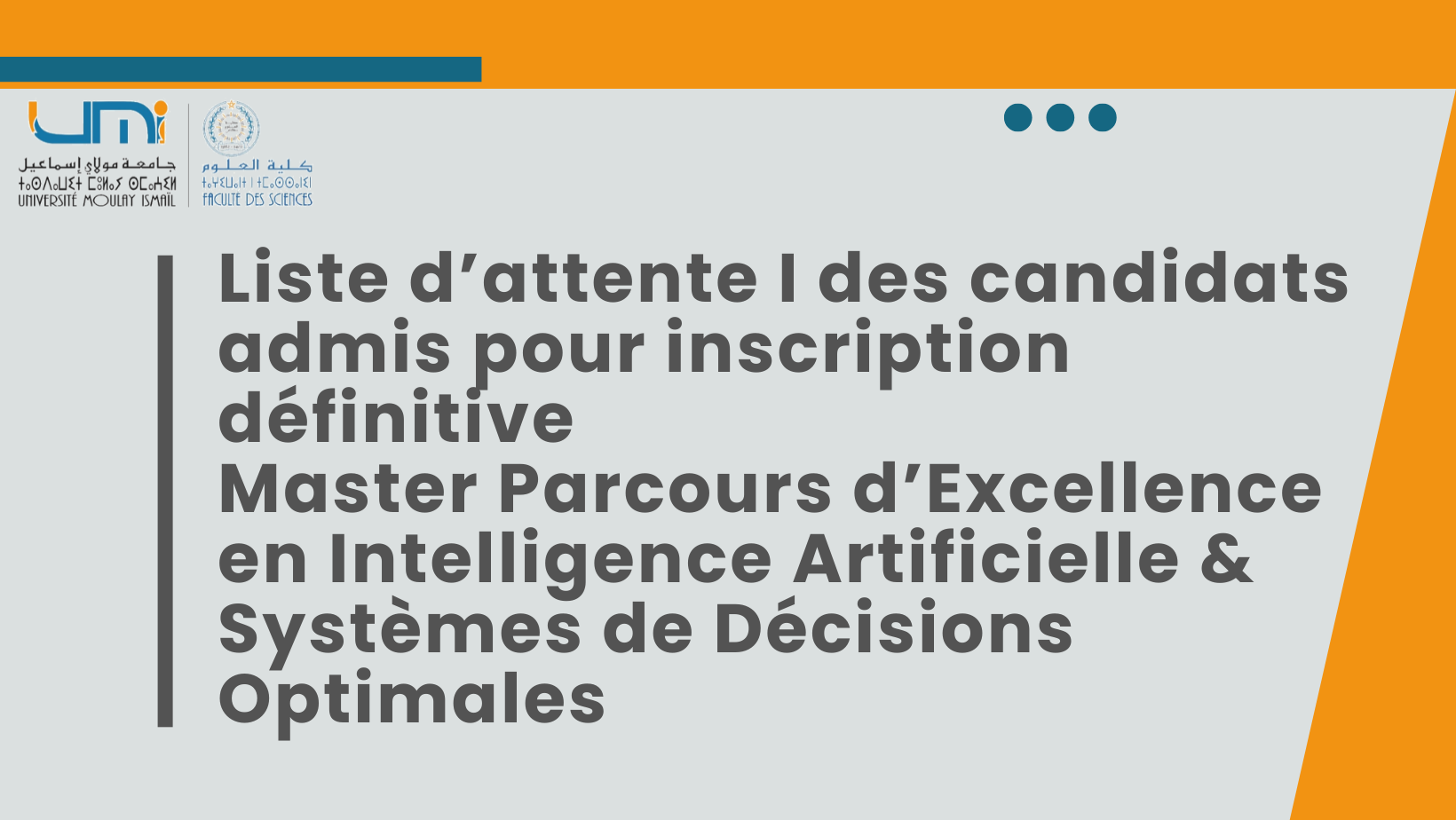 Liste d’attente I des candidats admis pour inscription définitive – Master Parcours d’Excellence en Intelligence Artificielle & Systèmes de Décisions Optimales