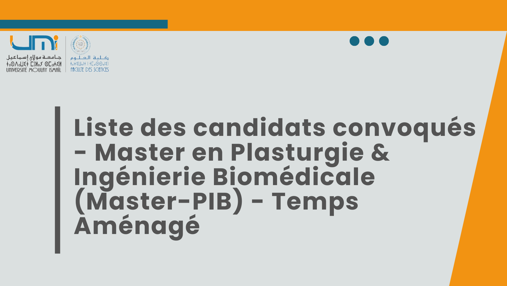 Liste des candidats convoqués – Master en Plasturgie & Ingénierie Biomédicale (Master-PIB) – Temps Aménagé