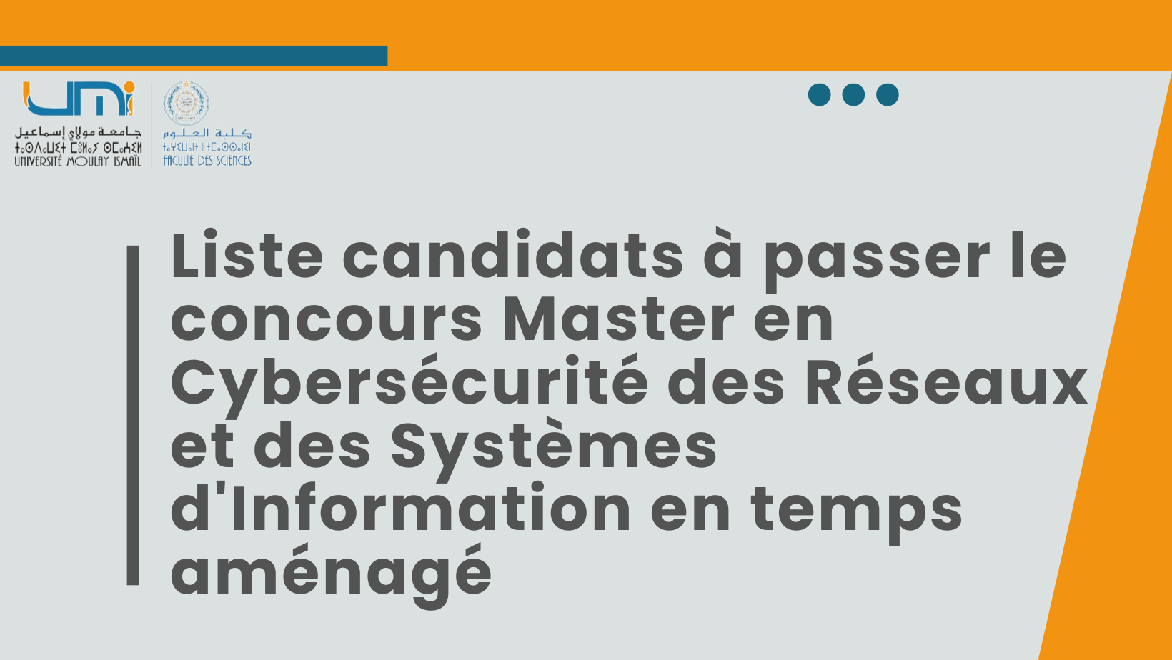 Liste candidats à passer le concours Master en Cybersécurité des Réseaux et des Systèmes d’Information en temps aménagé